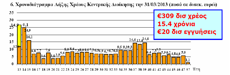 Το προφίλ του ελληνικού χρέους 31/3/2010 (πάνω) και 31/3/2013 (κάτω)