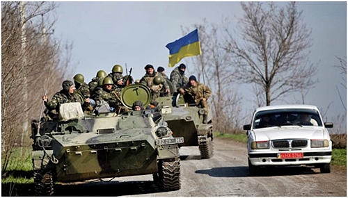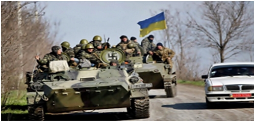 Στις 26 Απριλίου 2014 κυκλοφόρησε στο διαδίκτυο μέσω του πρακτορείου Νέα Ρωσία (Novorossiya’s central news agency) μια φωτογραφία που δείχνει ένα ουκρανικό τανκ με την μισητή σβάστικα ζωγραφισμένη στο καπάκι του πυργίσκου του και φορτωμένο με οπλισμένους στρατιώτες.