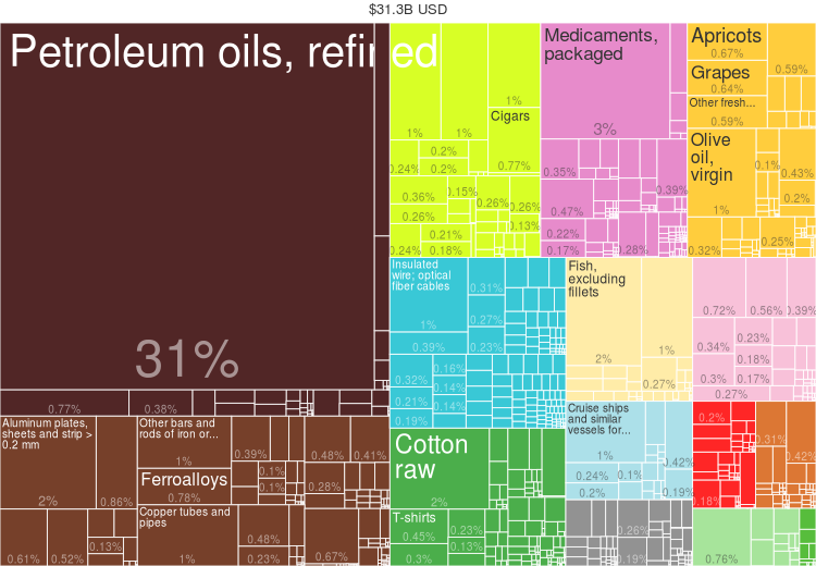 Όπως έγραψε σε άρθρο του ο καθηγητής Ρικάρντο Χάουσμαν, που υπήρξε και υπουργός Αναπτύξεως στην Βενεζουέλα, «το πρόβλημα είναι ότι η Ελλάδα παράγει πολύ λίγο από αυτό που ο κόσμος θέλει να καταναλώσει. Οι εξαγωγές προϊόντων της αποτελούνται κυρίως από φρούτα, ελαιόλαδο, ακατέργαστο βαμβάκι, καπνό και ορισμένα προϊόντα διύλισης πετρελαίου.