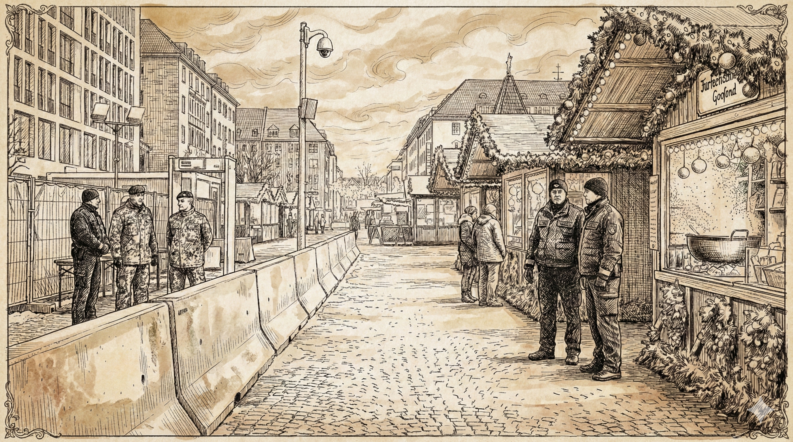 Φέτος, οι γερμανικές πόλεις άρχισαν από πολύ νωρίς να ετοιμάζονται για τις Weihnachtsmärkte τους. Μόνο που αντί για φώτα και γιρλάντες, προμηθεύτηκαν μπλοκ και μαντρότοιχους από σκυρόδεμα, «δόντια του δράκου», πύλες ελέγχου με σαρωτές μετάλλων, κάμερες παρακολούθησης CCTV, ενισχυμένο φωτισμό, συστήματα ανίχνευσης drone, containers ασφαλείας για σταθμούς αστυνομικών, μεταλλικούς φράχτες και μπάρες που τοποθέτησαν στις εισόδους και περιμετρικά των αγορών. Προσέλαβαν ιδιωτικούς φρουρούς που προστέθηκαν στις ενισχυμένες αστυνομικές δυνάμεις που περιπολούν πάνοπλες με το δάχτυλο στη σκανδάλη. Και εκπαίδευσαν το προσωπικό τους για καταστάσεις έκτακτης ανάγκης.